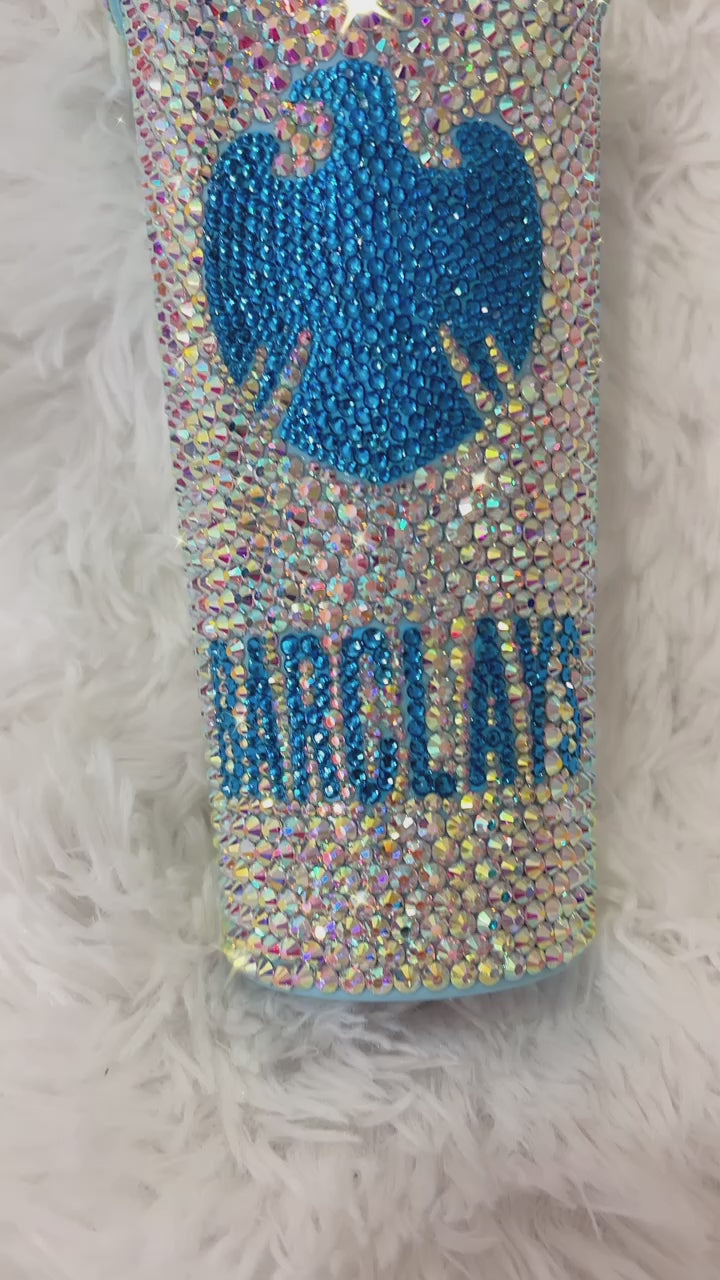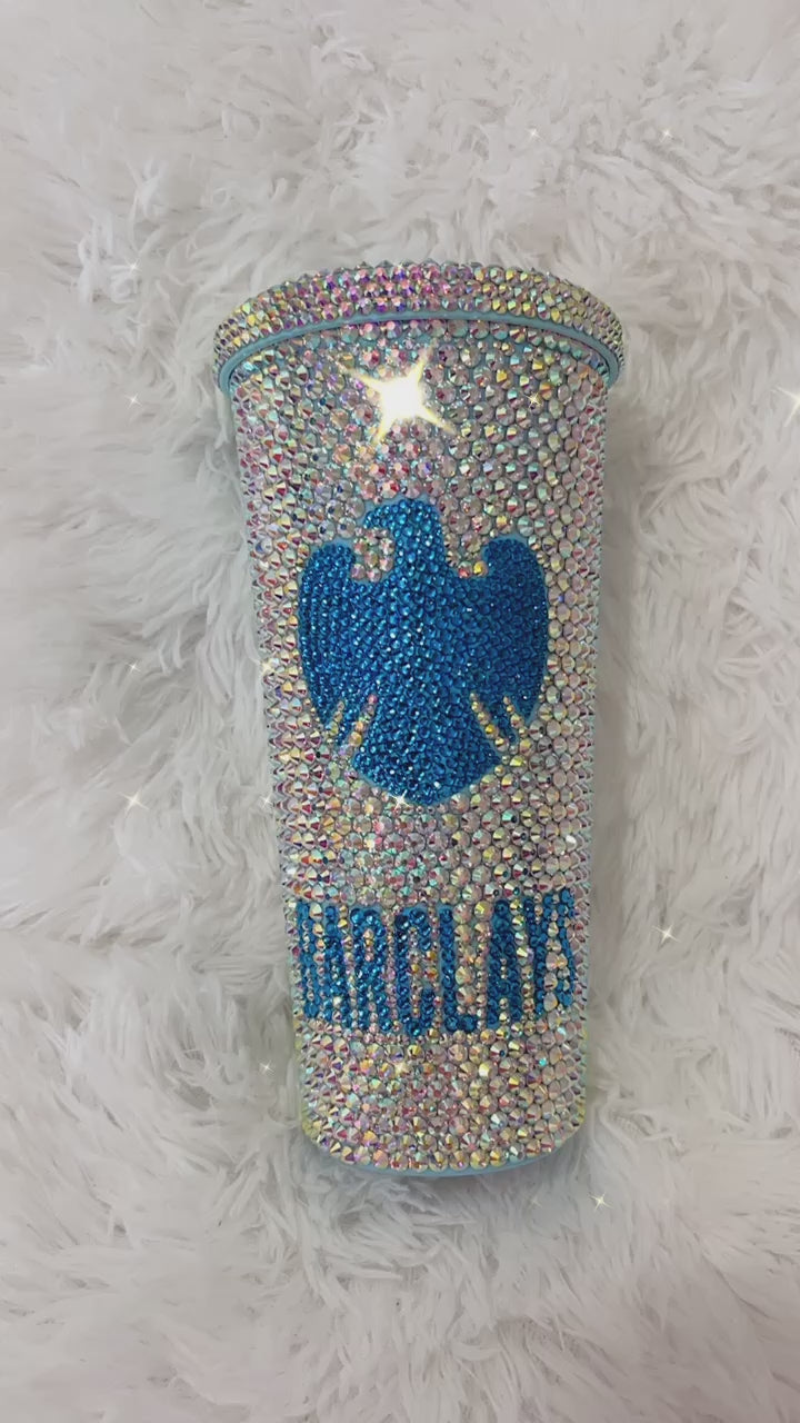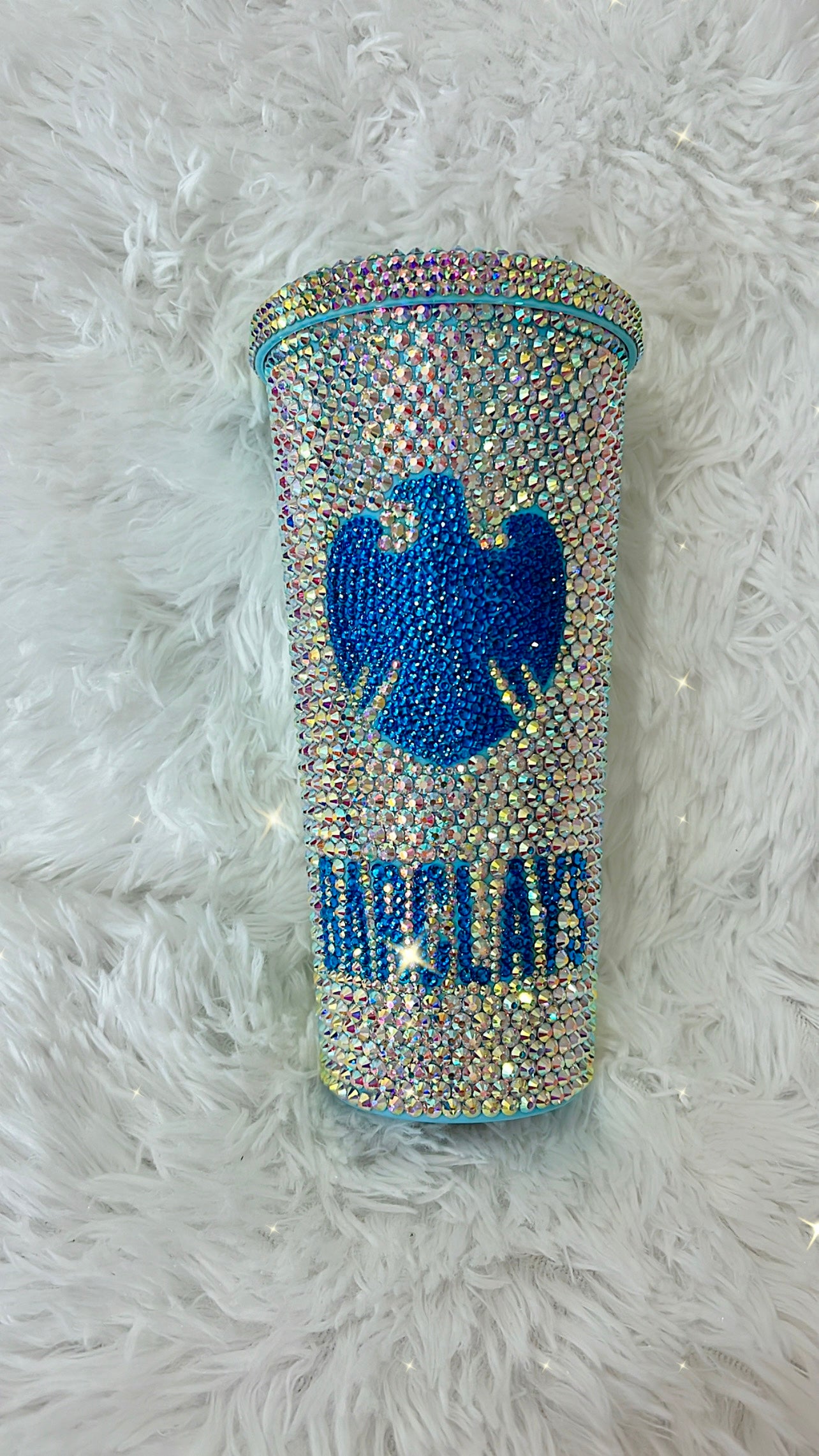 Introducing the exquisite Barclays Bank Custom Tumblr! Whether you are a proud Barclays customer or an esteemed employee, this cup is an absolute must-have. Crafted with precision, it features a stunning combination of AB glass stones and beautiful blue stones that perfectly replicate the Barclays emblem. Each stone is meticulously applied by skill, ensuring unparalleled attention to detail.