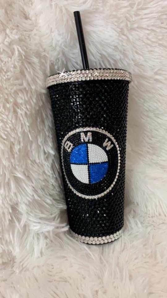 The custom BMW bling out tumbler captures the essence of automotive excellence and sophistication, featuring a sleek and durable design embellished with an array of shimmering stones, all applied by hand. This personal touch infuses the tumbler with a unique and heartfelt connection to the timeless allure of the BMW legacy.